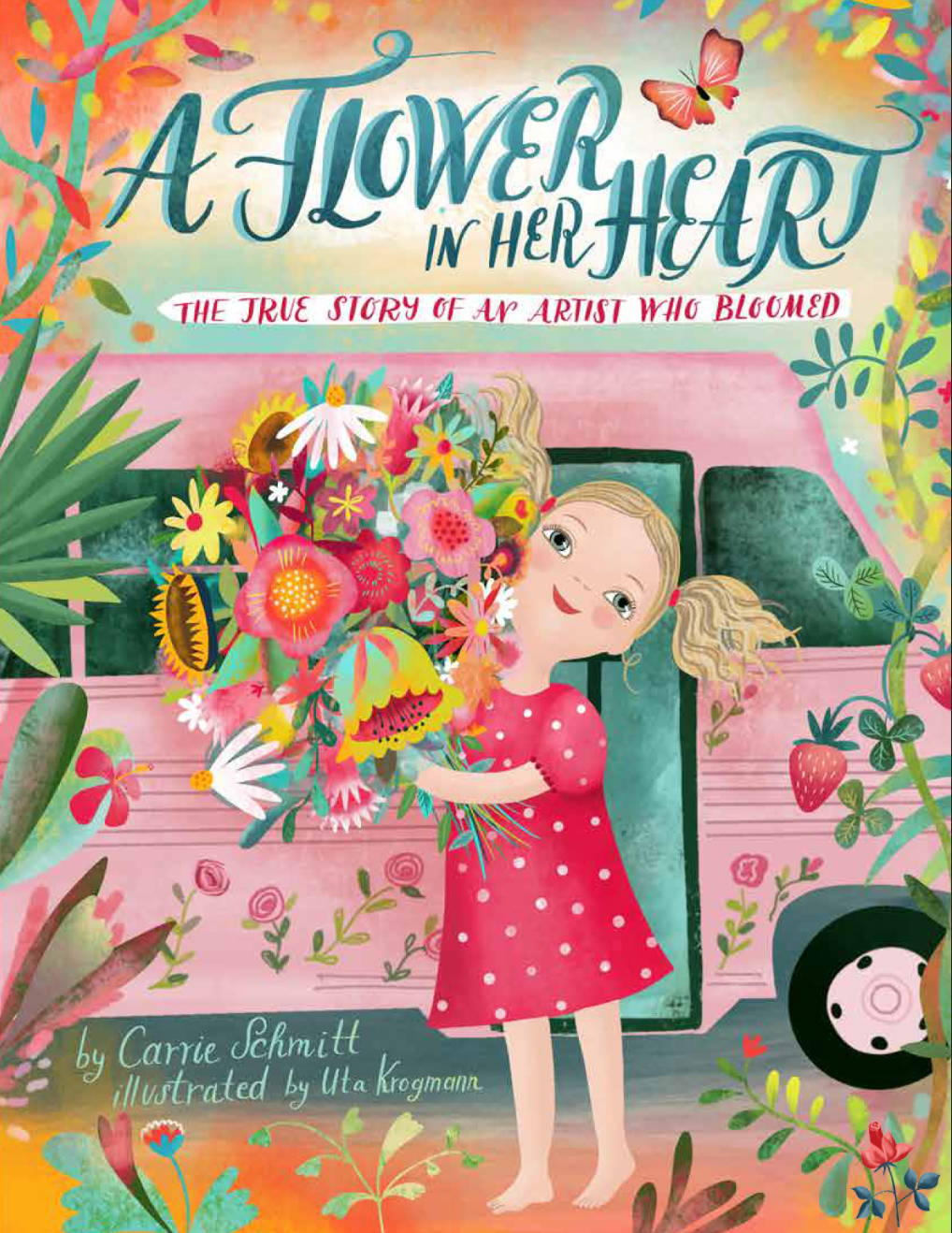 This leads to her adventure as an artist with a pink school bus who shares her love for color joy with the world.